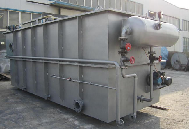 產品概述:溶氣氣浮設備是由氣浮池體、溶氣系統、溶氣水回流管路、溶氣水釋放裝置、刮渣機和電控系統組成。氣浮主要起固液分離作用(同時可以降低COD、BOD、色度等)。在原水中加入混凝劑和絮凝劑,經過有效絮凝反應時間后,原水進入組合氣浮接觸區。在接觸區內,溶氣水中的微氣泡與原水中絮體相互粘合,一起進入分離區,在氣泡浮力作用下,絮體與氣泡一起上升至液面,形成浮渣。浮渣由刮渣機掛至污泥區。下層的清水通過集水